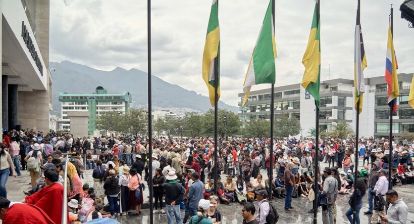 The Confederation of Indigenous Nationalities of Ecuador (CONAIE) presented the National Assembly with the “Draft Organic Intercultural Law for Integral Water Management”. At the event held in Quito on Tuesday 28 March 2023, Leonidas Iza, president of CONAIE Ecuador, was accompanied by leaders of the regional organisations Ecuarunari, CONFENIAE, CONAICE and some three thousand delegates from the federations belonging to the indigenous movement of the Sierra, Coast and Amazon.