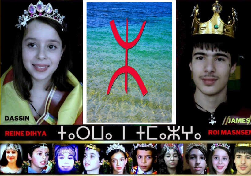 An example of the 5th edition of the Amazigh Children’s Competition held on January 14, 2023 of the Amazigh New Year Yennayer 2973 in London, where “Kabylian Community in UK” (KCUK) in partnership with “Amazigh Culture Project World” (PCAM ), two non-profit associations organized for the first time in the United Kingdom a historic competition for Imazighen children aged between 6 and 14, to elect a little QUEEN DIHYA and the little KING MASENSEN for an honorary title that will last one year, followed by musical songs. According to the head of “Amazigh Culture Project World”, the next 2024 edition will take place in the United States of America.