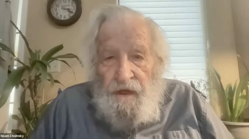 Professor Noam Chomsky discuss in May 23, 2023, Israel-Palestine conflict which he describes as “the main issue of my life” with academics Dylan Rodriguez, Michael Alexander and Mohamad Ali.