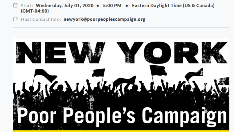 Join the New York State Poor People’s Campaign Meeting on Wednesday, July 1 at 5pm In 1968, Rev. Dr. Martin Luther King Jr. and many others called for a “revolution of values” in America. They sought to build a broad,…