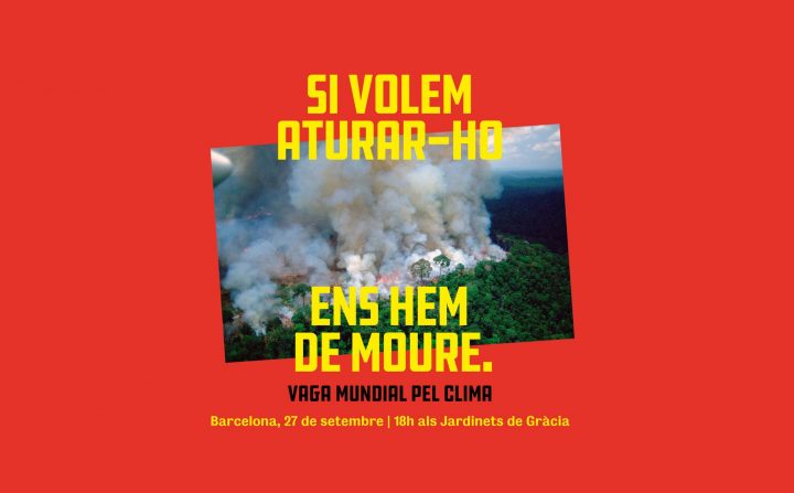 Davant l’emergència climàtica; Fridays For Future, al costat d’altres moviments germans, convoquem una setmana de mobilitzacions a partir del 20 de setembre amb motiu de la Cimera de l’Acció Climàtica de l’ONU. Aquesta setmana finalitzarà, el 27 de setembre, amb la Vaga Mundial pel Clima. Convoquem vaga estudiantil i de consum, mobilitzacions en carrers i centres de treball.