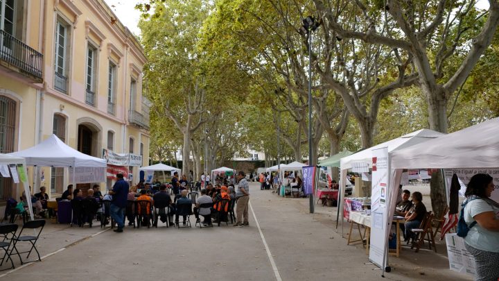 I una mica més enllà la Coordinadora 5+1 centrada en la desprotecció de la nostra gent gran davant el desastre que suposen moltes residències. Destacava l’espai sindical amb carpes de l’IAC i Cobas així com de la Plataforma del Servei d’atenció Domiciliària de Catalunya, aquest cop sense la veterana companya Fina.