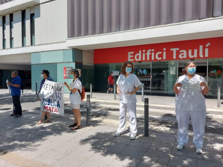 Davant de l’Hospital del Mar a Barcelona, però també del Clínic i  de Sant Pau i  de l’Esperança. Davant Santa Tecla a Tarragona, davant del Broggi, a Sant Joan Despí, de Santa Caterina, a Salt. Però  també a Valls, davant l’Hospital Pius, a Mataró i a Sabadell. Però també davant de CAPs, com el de Molí Nou, el CAP Roger o el de Pare Claret. També a espais sociosanitaris com el Centre Fòrum. I ja s’ha estès més, ja que n’hi haurà a Bellvitge, a la Vall Hebron, a l’Arnau de Vilanova, Trueta, Can Ruti, Verge de la Cinta, al Joan XXIII…, que suposen el gruix de l’atenció hospitalària pública a Catalunya. Un gran èxit  per a Sanitàries en Lluita, els convocants de les concentracions.