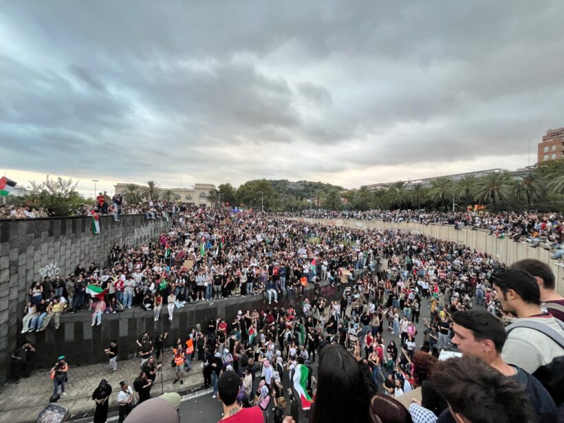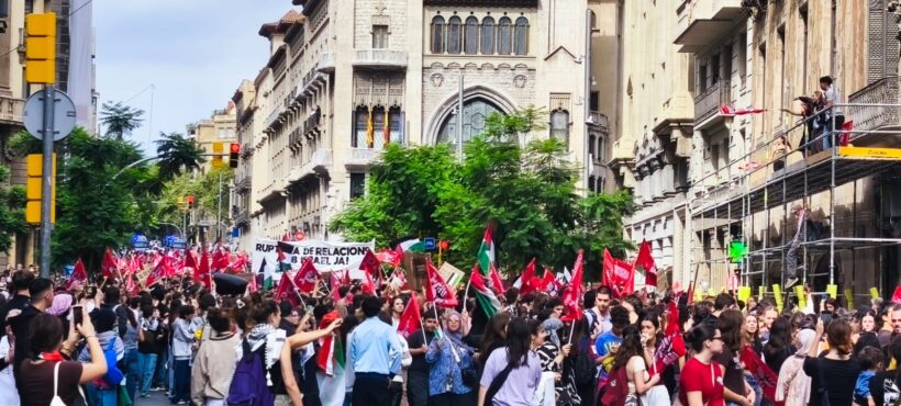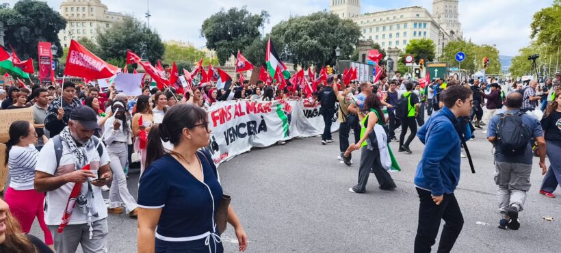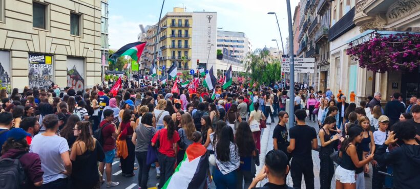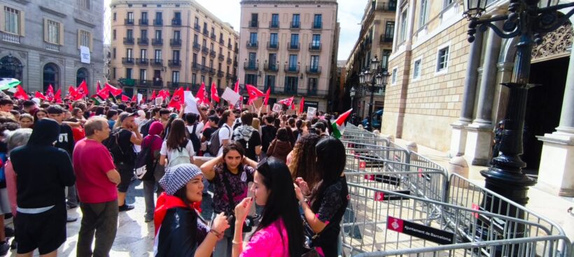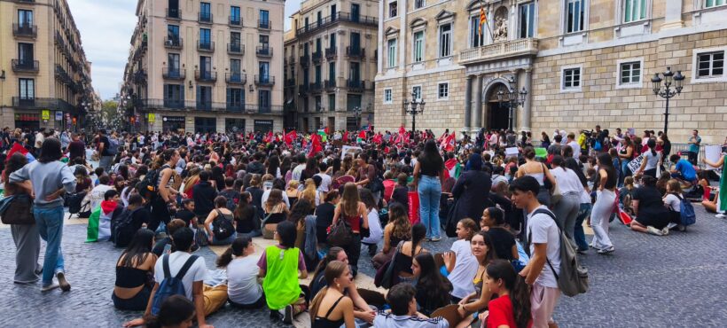 A Barcelona, la jornada ha tingut una especial intensitat. Al matí, més de 6.000 estudiants, convocats pel Sindicat d’Estudiants, han marxat fins a la plaça de l’Ajuntament i la seu de la Generalitat en una manifestació marcada per pancartes, banderes palestines i consignes contra el bloqueig i l’ocupació, mostrant solidaritat amb la població civil afectada i reclamant l’accés immediat d’ajuda humanitària a Gaza. En altres punts de la ciutat, com a plaça universitat, també es produïen concentracions en la qual es van corejar consignes contra l’ocupació israeliana i en defensa de Palestina.