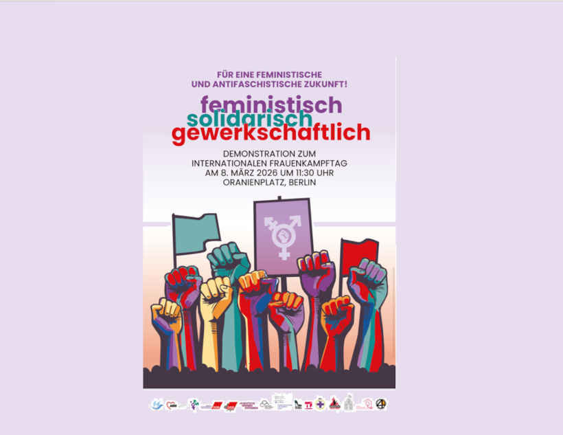 Ein breites Bündnis aus feministischen und stadtpolitischen Initiativen, Gewerkschaften und Verbänden ruft am 8. März wieder zur Großdemonstration „Feministisch, solidarisch, gewerkschaftlich“ auf und setzt damit ein starkes Zeichen für Gleichstellung, soziale Sicherheit und demokratische Teilhabe. Die Demonstration richtet sich gegen…