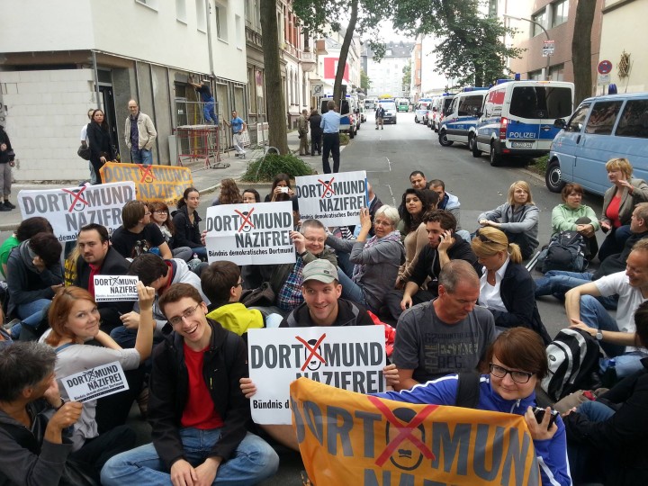 In letzter Zeit sind Aktivitäten im öffentlichen Raum verstärkt zu beobachten. Die Dortmunder Naziszene hat derzeit noch das Privileg, in einer Partei namens „Die Rechte“ formiert zu sein, die sich gründete, nachdem die Vorgängerorganisation „Nationaler Widerstand“ verboten worden war. Kleine Gruppen von Mitgliedern der Partei melden derzeit beinahe täglich Infostände in Stadtteilen an, in denen sie sich Zuspruch für ihre Gesinnung versprechen, beispielsweise in Vororten, in den gerade eine Unterkunft für Geflüchtete entsteht.