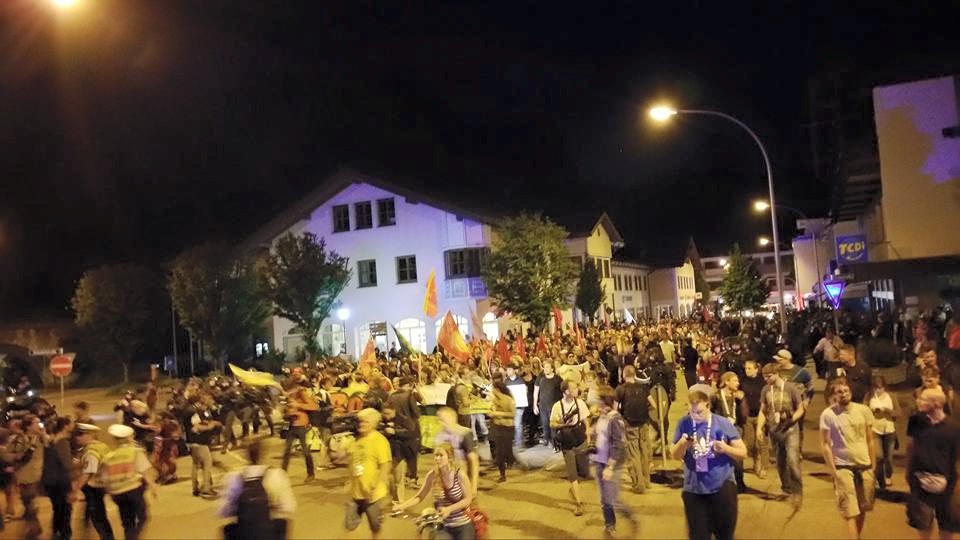Garmisch-Partenkirchen, 5.6.15, spontane Demonstration gegen die rassistische und ausbeuterische Politik der G7 Staaten. Eine andere Welt ohne G7 ist möglich!