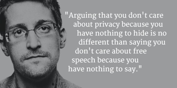 „Zu argumentieren, Dir sei Deine Privatsphäre egal, weil Du nichts zu verbergen hast, ist genau so, als ob Dir die Meinungsfreiheit egal wäre, weil Du nichts zu sagen hast.“ Edward Snowden (Bild von netzpolitik.org)
