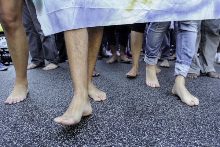 Der Umzug in Rom begann im Zentrum „Baobab“, das seit Monaten hunderte von Flüchtlingen aufnimmt, darunter viele, die aus dem geräumten Lager in Ponte Mammolo kommen. Tausende von Menschen nehmen barfuß teil, um zu demonstrieren, das diese Erde allen gehört. Das Recht, sich auf ihr zu bewegen und zu reisen, kann nicht verboten werden, die Bewegungsfreiheit ist etwas natürliches, menschliches, das zu unserer Geschichte gehört, zur Suche nach Freiheit, auf der sich der Mensch seit jeher befindet.