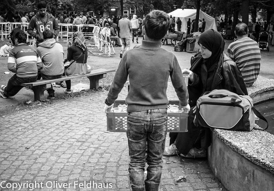 Er tut, was Senator Czaja und Co. nicht schaffen. Selbst aus Syrien gekommen, packt der Junge mit Freude an und versorgt die Menschen vor dem LaGeSo mit Zuwendung und frischem Wasser.
