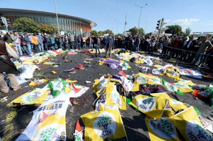 Rund hundert Menschen starben und viel mehr sind bei einer Explosion in Ankara, Türkei, auf einer Veranstaltung, die das Thema “Gegen den Krieg, Frieden jetzt” hatte, verletzt worden. Dieser Angriff hatte nicht nur die Absicht, diejenigen, die sich zusammen gefunden hatten zu terrorisieren, sondern die ganze Gesellschaft. Die Mörder möchten sich versichern, dass unser Volk, sich an den Terror und die Gewalt gewöhnt. Ihr Ziel ist es, zu erreichen, dass diese Menschen verzweifelt und ängstlich sind und sich somit nicht auf der Straße versammeln.