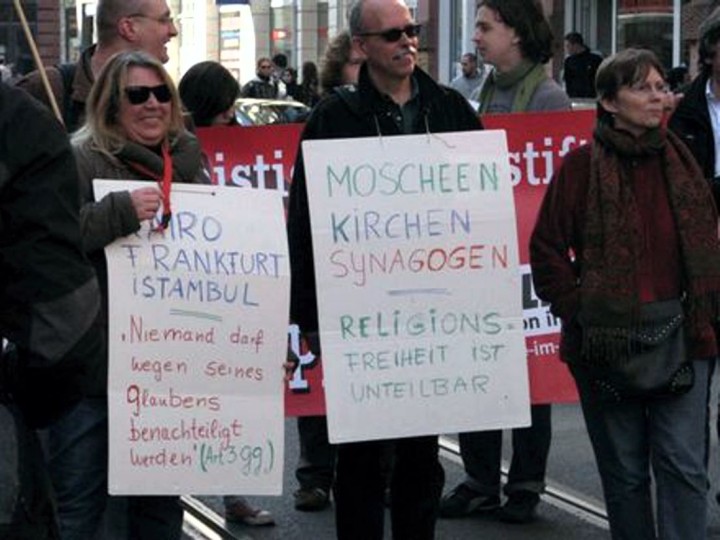 Ein dritter großer Sektor meiner Arbeit besteht in meiner Teilnahme an gesellschaftlichen und politischen Konflikten und Kämpfen, die es hierzulande gibt. Das ergibt sich ja schon aus dem, was ich ganz am Anfang zur Frage der Gleichheit gesagt habe. Für mich ist das keine Welt mit einem Eigenleben, die nichts mit meiner theologischen Arbeit oder meinem Religionsunterricht an einer Berufsschule zu tun hätte. Ich bin seit 2001 Sprecher eines antifaschistischen und antirassistischen Aktionsbündnis in Frankfurt, der Anti-Nazi-Koordination, aber auch im Bereich des Kampfs gegen Krieg und Imperialismus. Wer sich über meine aktuellen theologischen und sonstigen Überlegungen zu politischen Fragen informieren möchte, kann das auf meinem Blog tun – da gibt es ein Verzeichnis meiner theologischen Veröffentlichungen, dort kann man aber auch unter anderem meine Texte zur Kritik der „Islamkritik“ finden.