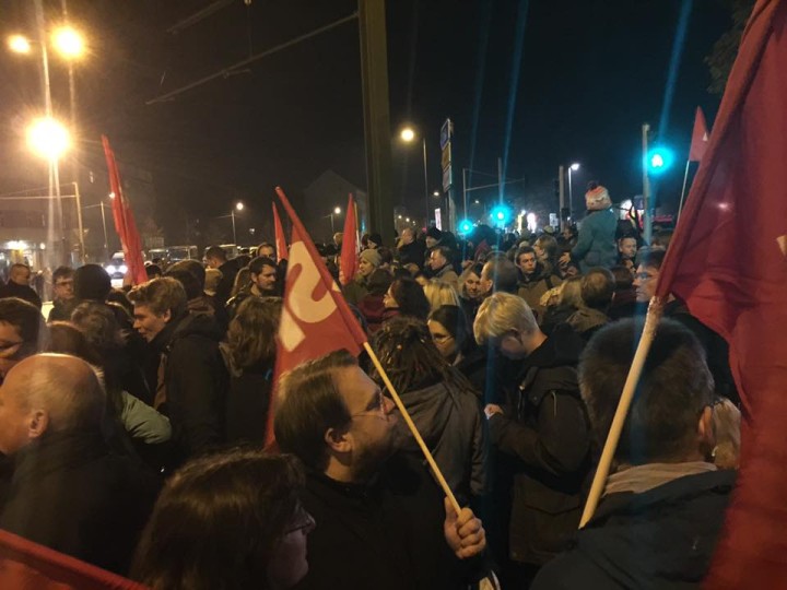 Der NPD-Aufmarsch am 2. November vor Geflüchteten-Unterkunft in Berlin-Johannisthal wurde blockiert. Die aggressiven NPD-Anhänger und Nazis blieben bei ihrer selbsternannter „Bürgerdemo“ unter sich.
