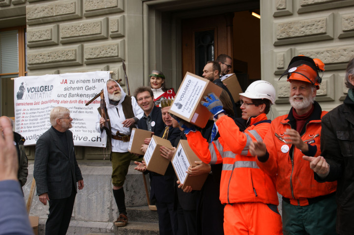 Die Schweiz wird nach mehr als 100 Jahren wieder über die Reform des Banken- und Geldsystems abstimmen können: Die Vollgeld-Initiative hat am 1. Dezember 111’819 beglaubigte Unterschriften für eine Verbesserung des Geld- und Bankensystems eingereicht. Die Initiative des überparteilichen Vereins MoMo (Monetäre Modernisierung) will, dass die Nationalbank neben Münzen und Banknoten auch alles elektronische Geld erzeugt. Dieses elektronische Geld auf Schweizer Konten wird heute von privaten Banken erschaffen. Es ist unsicher, gefährdet das Finanzsystem und damit die Schweizer Volkswirtschaft.
