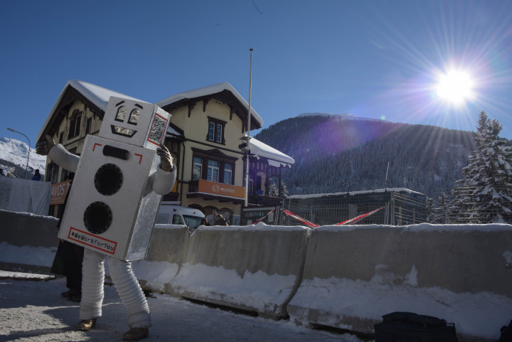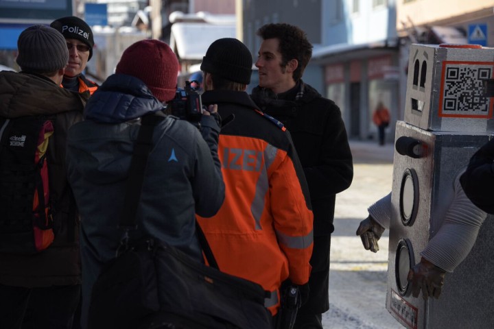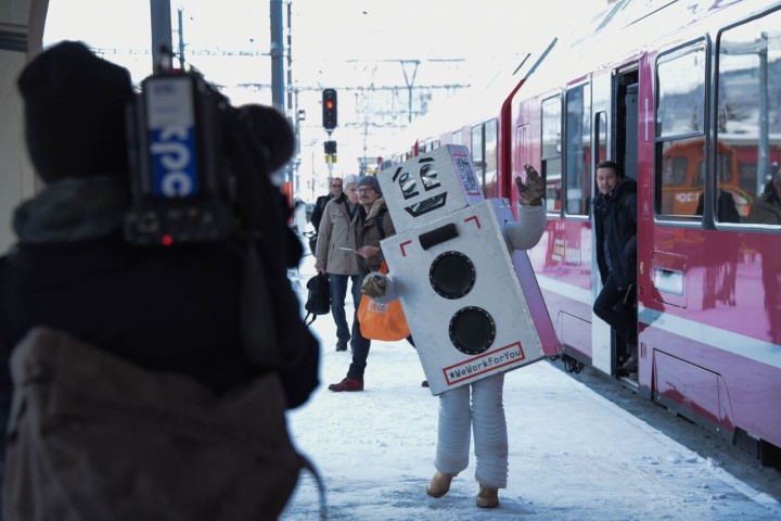 In Davos fand letzten Donnerstag eine Weltpremiere statt: Der erste nicht-menschliche Teilnehmer besuchte das WEF. Der tanzende Roboter warb für das bedingungslose Grundeinkommen als Lösung für die Herausforderungen der vierten industriellen Revolution. Die Medienkonferenz wurde von den Sicherheitskräften kurzfristig unterbrochen. Die Schweiz ist das erste Land, welches 2016 über die Einführung eines bedingungslosen Grundeinkommens abstimmt.