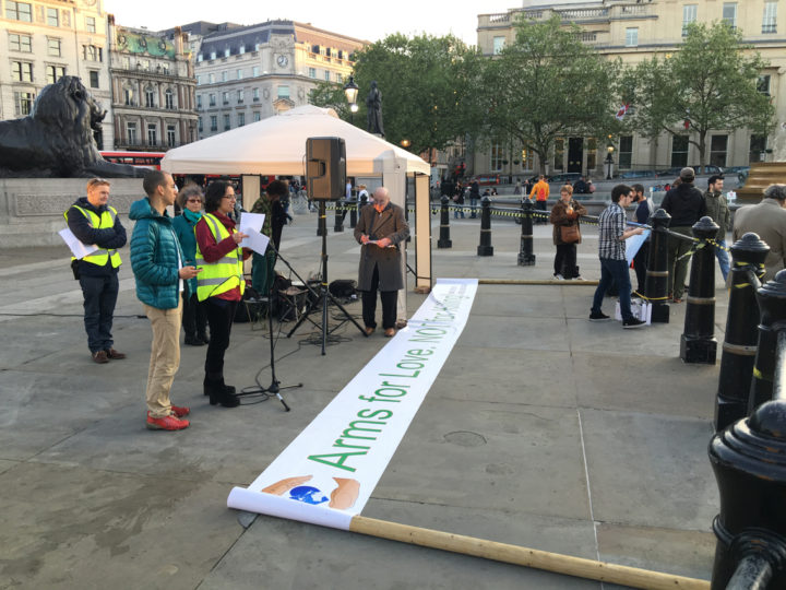 Am 14. Mai trafen sich die Londoner, um gemeinsam ein Friedenszeichen auf dem Trafalgar Square zu formen und dem Ruf nach Frieden und Gewaltfreiheit zahlreicher Organisationen Gehör zu verschaffen.