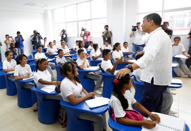 Den Auftrag, den wir bereits umsetzen, lautet, dass Bildung nicht vom Geldbeutel des Elternhauses abhängen darf. Es ist nur eine Frage der ausreichenden Kapazität, um die Nachfragen zu erfüllen. Wer die vorgeschriebenen Eignungsprüfungen bzw. Examen schafft, kann auch kostenlos studieren. Es ist uns wichtig, dass es eine Chancengleichheit in Ecuador gibt, denn das ist in Lateinamerika nicht selbstverständlich. Aber für uns ist es eine Selbstverständlichkeit, dass Bildung eine der wichtigsten Investitionen darstellt und zur Verfügung gestellt werden muss. Das haben wir auch in der Bildungspolitik gezeigt. Wir stehen immer noch an der Spitze der Länder mit den besten und meisten Bildungsabschlüssen, wenn man dies mit vielen anderen OSZE-Ländern vergleicht. Die ist für uns auch eine Verpflichtung, um eine Verbesserung der Lebensbedingungen für unsere Bevölkerung zu erreichen und vor allem die Armut damit zu bekämpfen.
