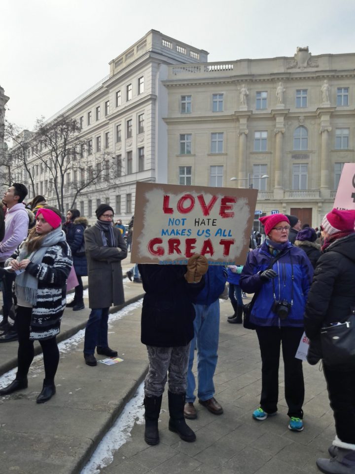 Heute am 21.1.2017 fand in Wien der Solidaritäts-Marsch „Women´s March on Washington“ statt. Die Amerikanerin Caroline Kirkpatrick, die in Wien lebt, hat aufgrund des Wahlausgangs in ihrem Heimatland diesen Marsch in Wien möglich gemacht.