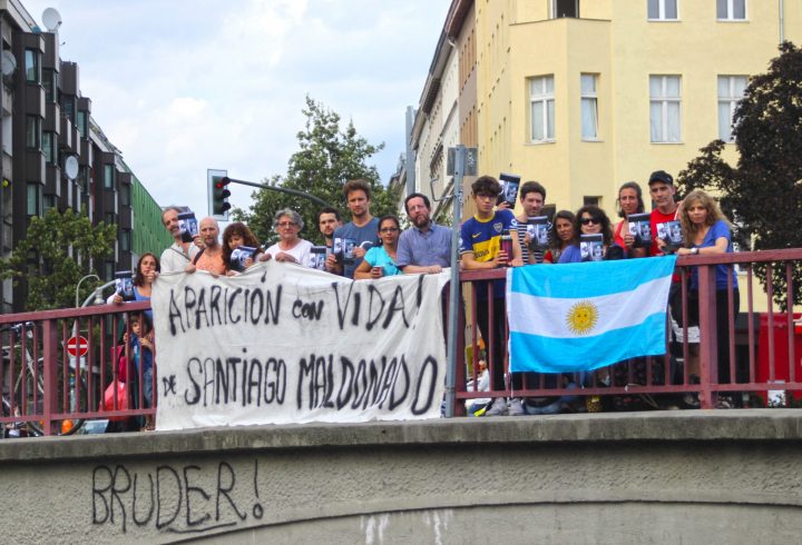 In Deutschland lebende argentinische Bürgerinnen und Bürger mobilisierten in Berlin-Kreuzberg und verlangen das Maldonado Santiago wohlbehalten auf freien Fuß gesetzt werden soll.