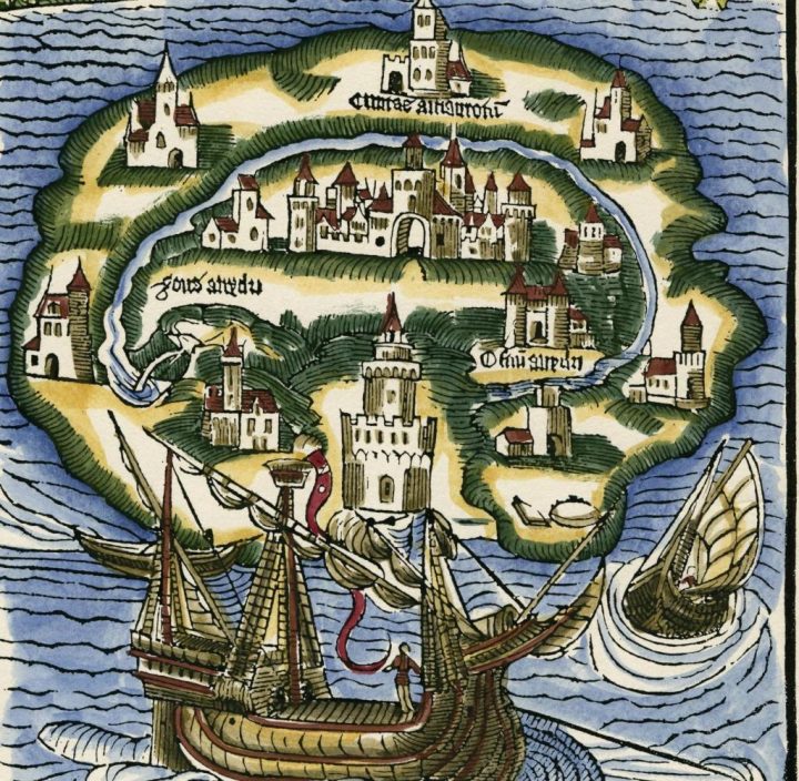 Titelholzschnitt von Thomas Morus‘ „Utopia“