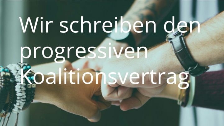 In den kommenden Wochen sammeln wir vielfältige Ideen und Forderungen von NGOs, Verbänden, Initiativen und Parteien ein und fassen sie in einem progressiven Koalitionsvertrag zusammen.