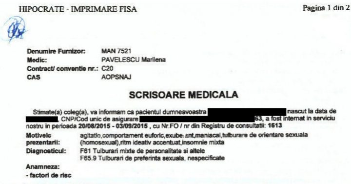Während sogar in den USA immer mehr Staaten die Reparativtherapie gegen Homosexualität verbieten, verabreichen die sogenannten Ärzte in Rumänien Medikamente, und stempeln Homosexuelle mit Hilfe einer Klassifikation F65.9 als krank ab.