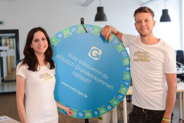 Mein Grundeinkommen ist gemeinnütziges Start-Up und junge NGO zugleich. Via Crowdfunding werden Spenden gesammelt und sobald 12.000 Euro zusammen sind, werden diese als einjähriges Bedingungsloses Grundeinkommen verlost. Der Zuspruch ist groß: Vor knapp vier Jahren gegründet, befeuert Mein Grundeinkommen heute mit über einer Million Usern und rund 100.000 Groß- und Kleinstspendern die Debatte rund um das Bedingungslose Grundeinkommen.