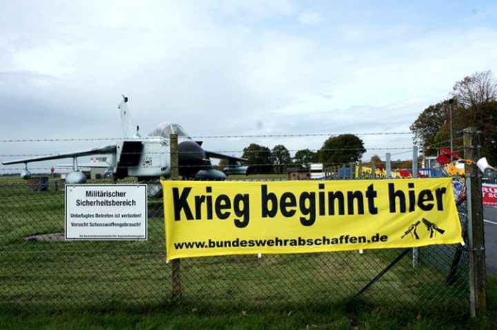 der Linken im Bundestag, Kathrin Vogler: „Die Bundeswehr betreibt mit diesen Zahlen Greenwashing.“ Die vom Verteidigungsministerium genannten Emissionen der Bundeswehr im Inland machen derzeit ungefähr 0,2 Prozent der deutschen Gesamtemissionen aus, was sich geradezu unbedeutend ausnimmt. Während die zuvor erwähnte Studie zu den US-Militärs jedoch auch die zahlreichen verbrauchsintensiven Auslandseinsätze einrechnet, blendet das Ministerium diese aus. Vogler kritisierte denn auch zu Recht die Aufstellung als unvollständig: „Die Bundeswehr zählt also weder ihre Kriege mit noch den CO2-Ausstoß der Produktion von Panzern und Kampfflugzeugen.“ [10] Da die deutsche Truppe derzeit in 18 Auslandseinsätzen steht, wird ein gewaltiger Posten an Emissionen kurzerhand unterschlagen. Unter dem Strich bringt der Aufruf zur Mahnwache in Jagel die Problemlage auf den Punkt, wenn er mit der Forderung schließt: „Die Abschaffung der Bundeswehr – das ist Klimaschutz!“