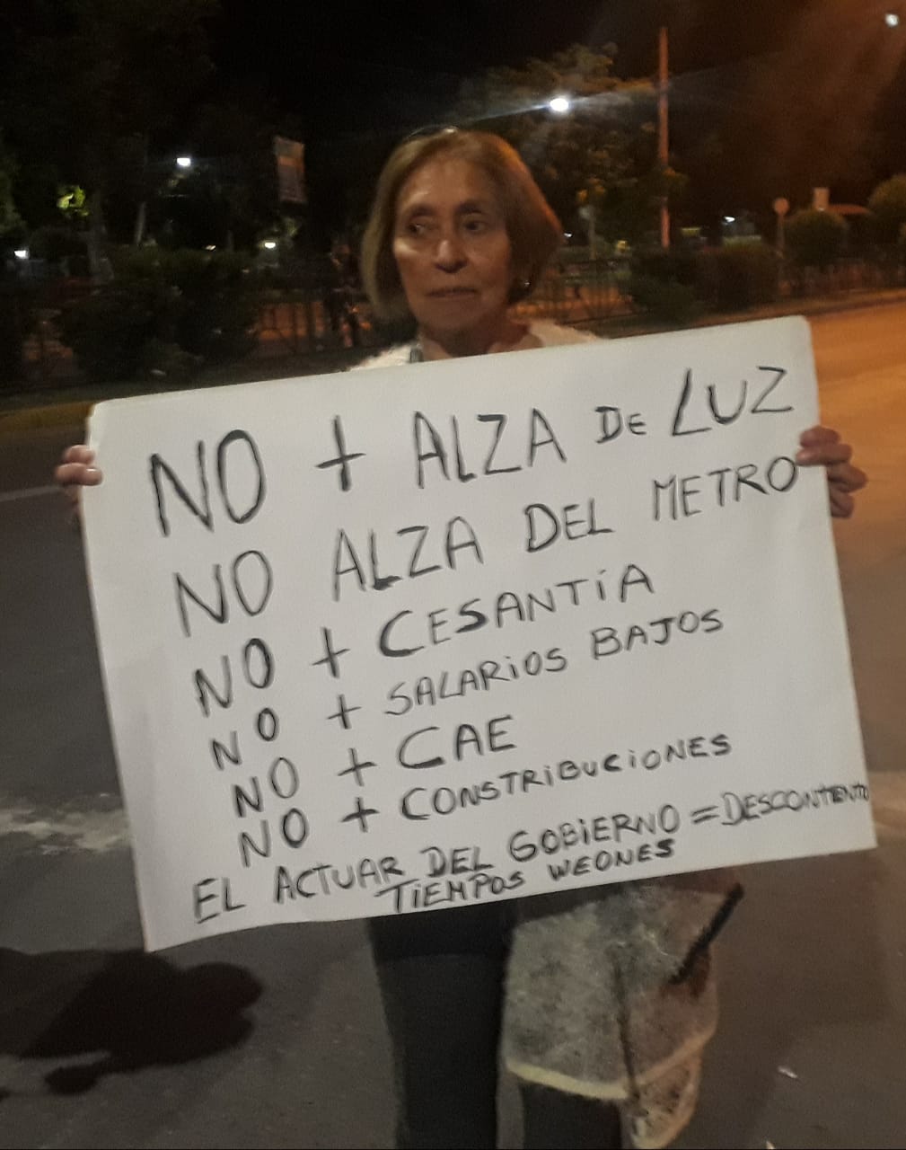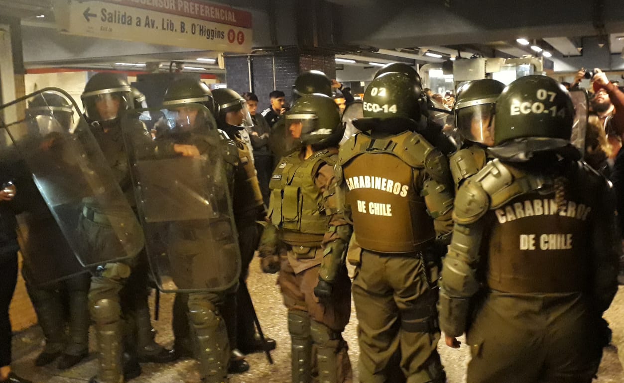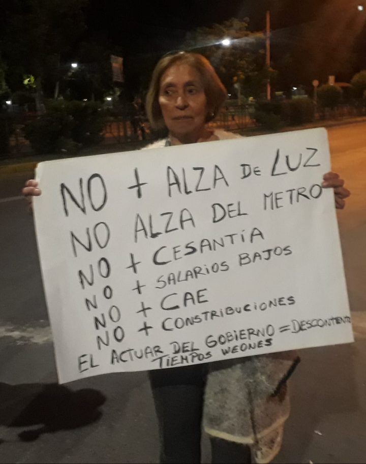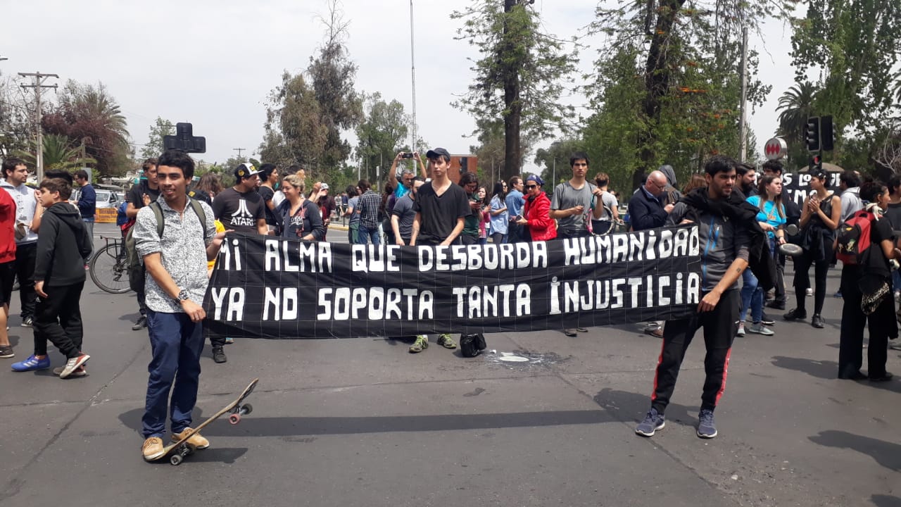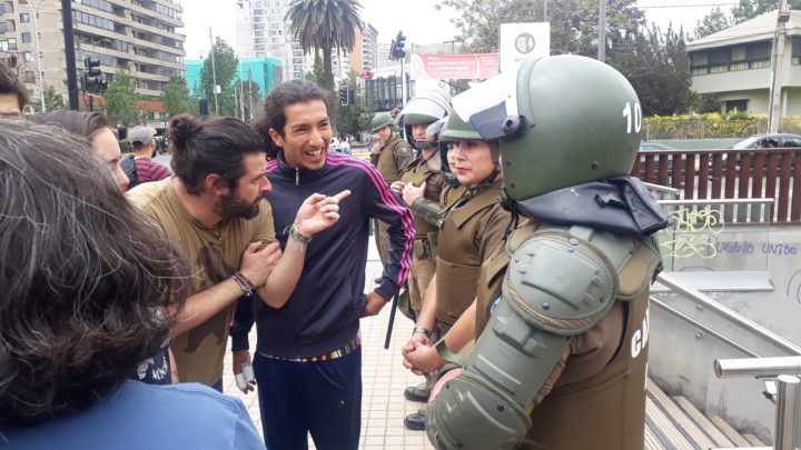 Seit der Verhängung des Ausnahmezustands Freitag Abend gab es Samstag Nachmittag zahlreiche Demonstrationen, bei denen Menschen sich empörten und auf den Straßen gegen Polizei und Militär antraten, die an den Knotenpunkten von Santiago wie rund um die Plaza Italia eingesetzt wurden. Zum ersten Mal in der Demokratie nach der Diktatur wurden wieder Armeepanzer auf den Straßen gesehen, und obwohl sie ein schockierender Anblick für diejenigen waren, die das Militärregime durchlebt haben, konfrontierten viele Menschen die Militärs und sagten ihnen mit unverhülltem Gesicht, dass sie in ihre Kasernen zurückkehren sollen. Im Moment gibt es an vielen Stellen Scharmützel, an denen sich trotz Polizei und Tränengas immer mehr Demonstranten aufhalten. Es gibt auch Gerüchte, dass man über eine Sperrstunde nachdenkt.