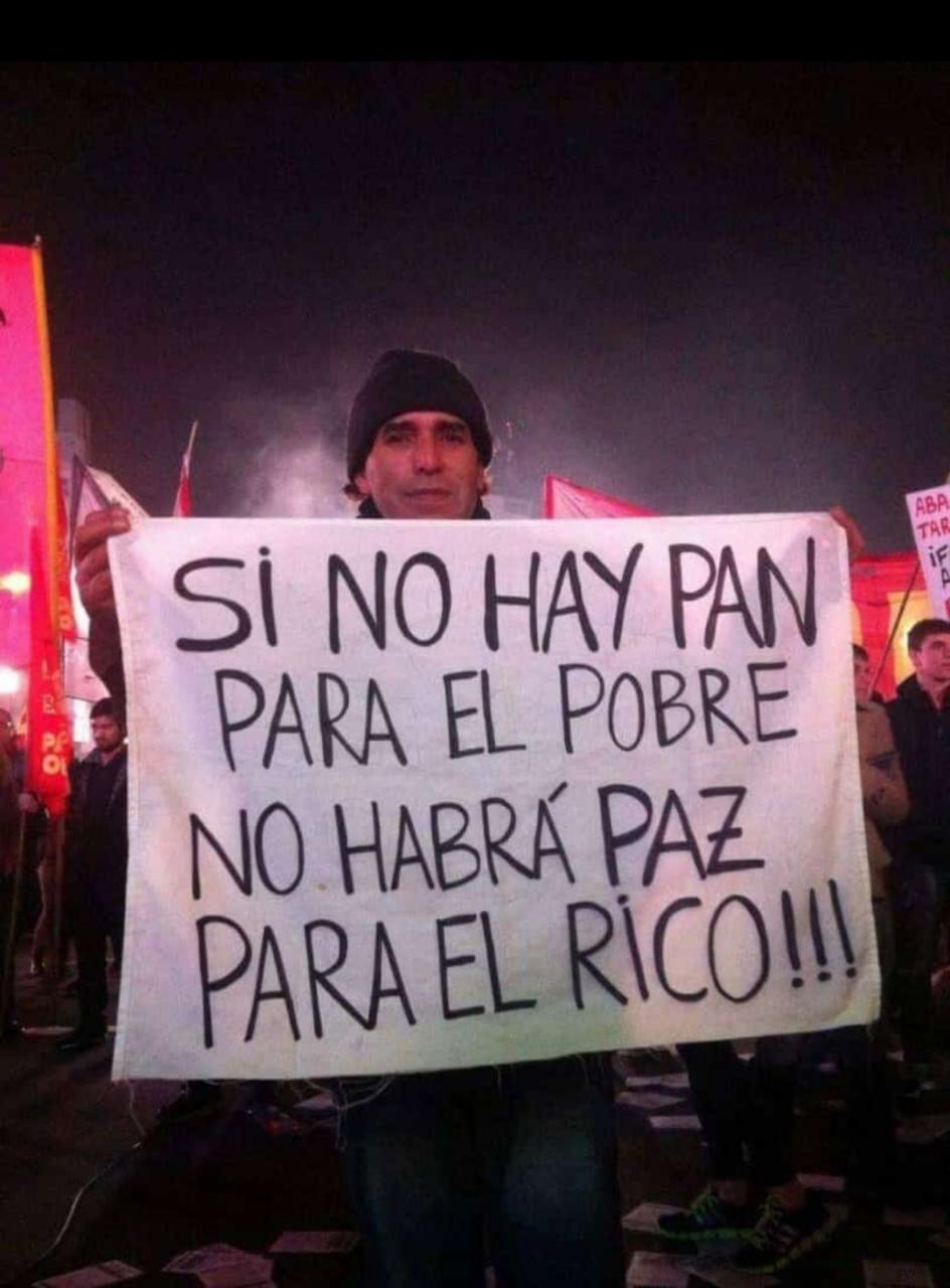 Die Töpfe, Pfannen und Trompeten sind in vielen Vierteln und Gemeinden der Hauptstadt zu hören, das bestätigen auch die Videos, die in den sozialen Netzwerken kursieren. Vielleicht ist es das, die sekundenschnelle Kommunikation von heute, was DER entscheidende Unterschied zu den Protesten von damals ist, wie denen der 80er Jahre gegen Pinochets Diktatur und viele andere. Heute ist es möglich, die allgemeine Stimmung von Protest und Überdruss präzise und in Echtzeit publik zu machen und so die Desinformation der offiziellen Medien zu umgehen.