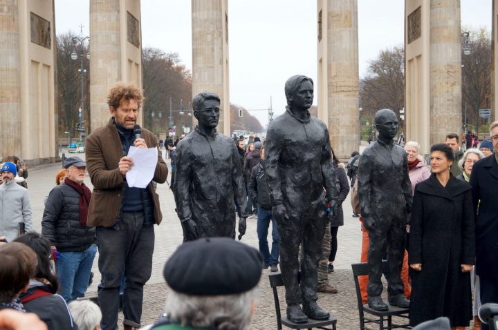 Ebenfalls anwesend auf dem Pariser Platz in Berlin war Nils Melzer, UN-Sonderberichterstatter über Folter. Er warf dem Westen vor, seine Dissidenten auch zu verfolgen, sie in politischen Schauprozessen mit drakonischen Strafen zu belegen und wie gefährliche Terroristen in Hochsicherheitsgefängnissen unter entwürdigenden und unmenschlichen Bedingungen wegzusperren.