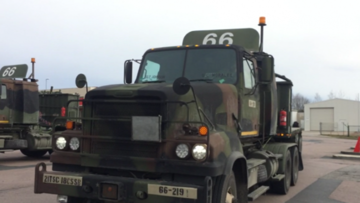 Die US-Armee bringt containerweise Gerät nach Polen. Aufnahmen, die RT Deutsch exklusiv vorliegen, zeigen US-Schwertransporter, die beladen mit Containern nahe der A4 in Hainichen Zwischenstopps zum Tanken einlegen. Außerdem sind polnische Lastwagen zu sehen, die US-Militärfahrzeuge transportieren. Anschließend fuhren sie weiter in Richtung Polen. Gestern kamen die Sattelschlepper leer zurück.