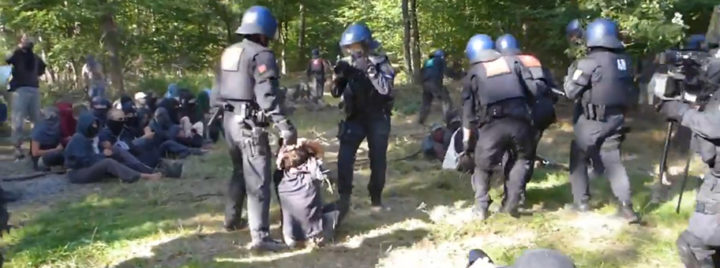 Bei der Räumung dieser Blockade hat die Polizei die Situation massiv eskaliert, am Boden liegende Menschen unnötig herumgeschleift, stehende Menschen durch die Gegend geschubst und massiv Schlagstöcke eingesetzt. Der Zwischenstand der Verletzungen, die dem Presseteam der Besetzung derzeit bekannt sind, sind eine blutige Nase, eine Kopfverletzung, eine Ohnmacht und eine geprellte Hüfte.