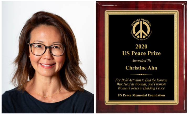 Der diesjährige US-Friedenspreis ging an Christine Ahn, die für ihren mutigen Aktivismus zur Beendigung des Koreakrieges geehrt wurde, ihr Engagement um dessen Wunden zu heilen und dafür, wie sie die Rolle der Frau im Friedensbildungsprozess förderte.