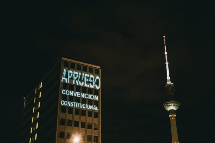 Der Alexanderplatz ist bei vielen Berlinern und Besuchern der Stadt ein beliebter Platz und gleichzeitig ein wichtiges Wahrzeichen. Diesen Ort wählten chilenische Künstler/innen für ihre Aktivitäten. Sie fanden im Rahmen des Festivals „Chilean Conexion“ am Sonntag, dem 18 October 2020, im Rahmen der Würdigung des ersten Jahrestages der sozialen Explosion in Chile statt. Vor einem Jahr gingen Tausende Chilenen und ihre Unterstützer weltweit ( wir berichtenten s. u.) auf die Straße und erhoben ihre Stimme für verschiedene soziale Forderungen und die Ablehnung des neoliberalen Systems.
