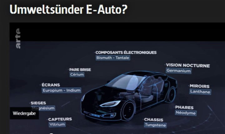 Vertieft wird diese Analyse am Beispiel der Elektroautos. Deren Umweltbilanz sei insgesamt nicht besser als diejenige von Autos mit fossil betriebenen Verbrennungsmotoren, analysieren im Film befragte Fachleute. Damit bestätigen sie Artikel von Infosperber aus den Jahren 2018 und 2019 über die Ökobilanz von Elektroautos in der Schweiz: Einem Rückgang der Treibhausgas-Emissionen im Betrieb, (sofern die dafür eingesetzte Elektrizität wie hierzulande mehrheitlich aus Wasserkraft stammt) steht eine höhere Umweltbelastung bei der Produktion von Elektromotoren und Batterien gegenüber.