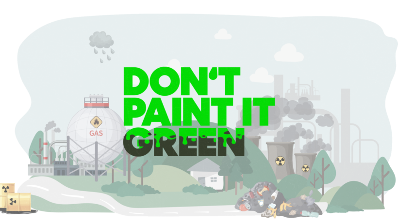 Die Kampagne „Don’t Paint It Green“ wurde von DiEM25 ins Leben gerufen gestartet, die sich gegen das Greenwashing von Gas und Kernenergie wendet und die Mitglieder des Europäischen Parlaments unter Druck setzen wird, bis sie sich verpflichten, eine Energietaxonomie zu stoppen, die Kernenergie und Gas als „nachhaltig“ kennzeichnet.
