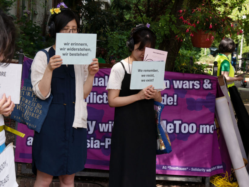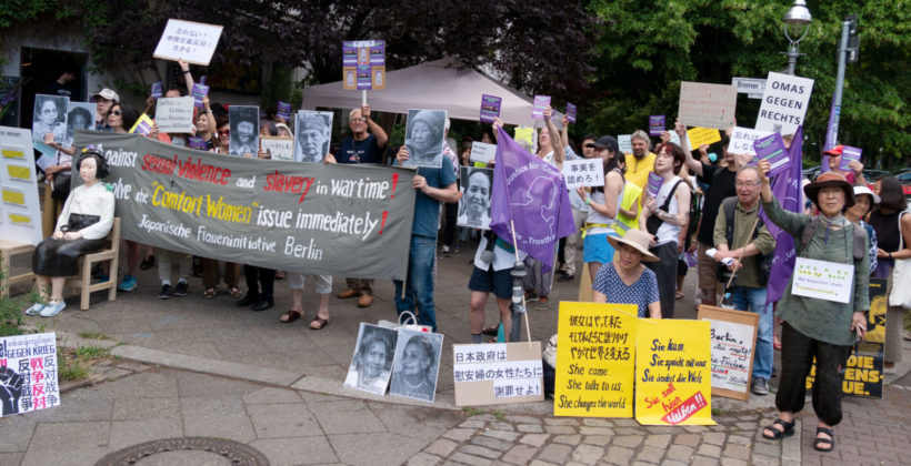 „Es sind knapp zwei Jahre vergangen, seitdem die „Friedensstatue“ in Moabit, Mitte errichtet wurde. Nun erreichte uns eine Nachricht, dass südkoreanische und japanische konservative Frauengruppen nach Berlin kommen, um die Beseitigung der Statue zu propagieren. Wir, die aus Japan kommen und in Berlin wohnen, sind fassungslos.