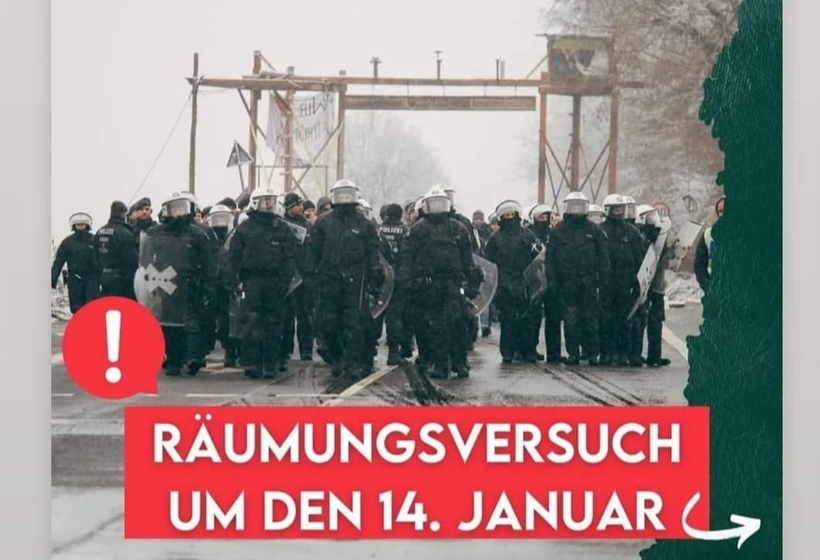 Es wird bundesweit zum Protest und Widerstand aufgerufen. Mit dem Beginn der Räumung wird für den Zeitraum 10. bis 15. Januar gerechnet. Mehr Details, auch zu dezentralen bundesweiten Veranstaltungen erfahrt ihr hier: Lützerath lebt!