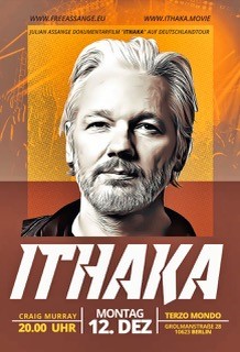 Weitere Filmvorführungen der Doku ITHAKA in Berlin nächste Woche. Am 12.12. wird André Hunko im Terzo Mondo zum Gespräch vor Ort sein. Craig Murray ist verhindert.