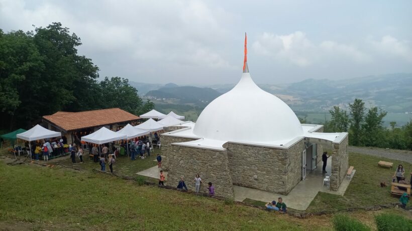 Am Sonntag, den 4. Juni, wurde inmitten von heftigen Regengüssen und blendenden Sonnenstrahlen der Meditationssaal des Studien- und Reflexionsparks Casa Giorgi in den Hügeln von Piacenza eingeweiht. 500 Menschen kamen aus italienischen Städten, aber auch aus verschiedenen europäischen, afrikanischen und amerikanischen Ländern, um an diesem emotionalen Ereignis teilzunehmen. Viele der Teilnehmer:innen hatten sich schon lange nicht mehr gesehen und die Freude, einander zu treffen, schuf eine warme, ungezwungene und intensive Atmosphäre.