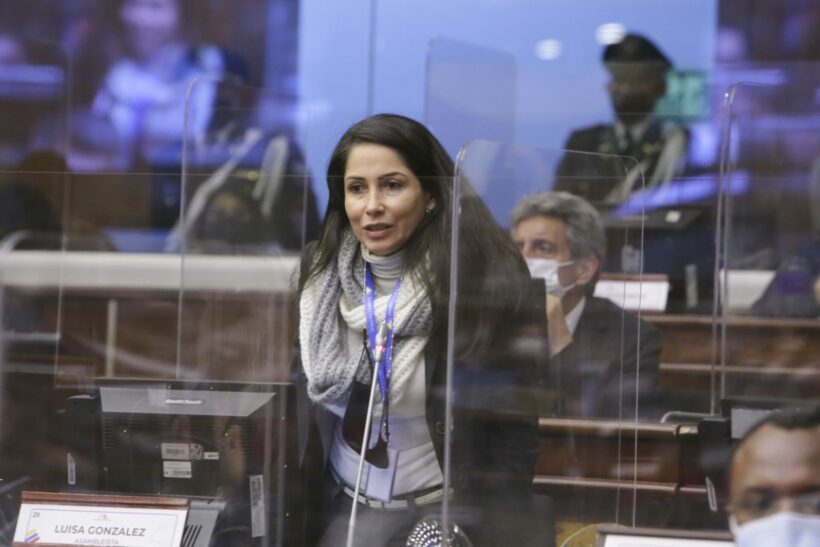 Sie fügte hinzu, dass „es das erste Mal in der Geschichte Ecuadors ist, dass eine Frau einen so hohen Prozentsatz der Stimmen im ersten Wahlgang erhält und damit die Wahlen zum Präsidenten der Republik gewinnt und die Geschicke des Landes leitet“.