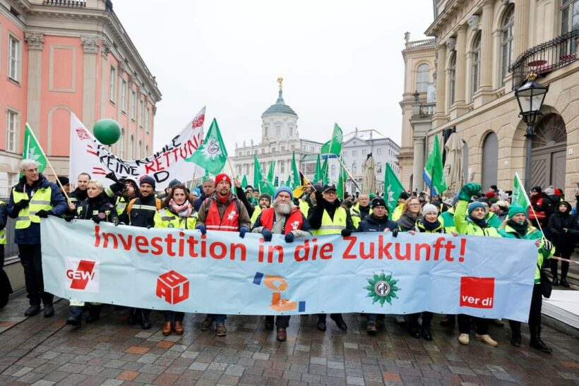 Warnstreikkundemonstration der Gewerkschaften im öffentlichen Dienst der Länder vom alten Markt zum Luftschiffhafen