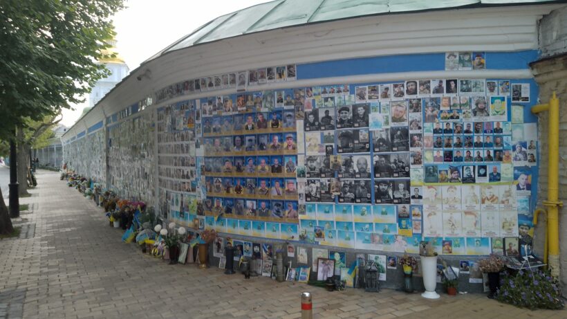 Aber das Schrecklichste, über das ich noch ausführlicher schreiben werde, nachdem ich mich besser informiert habe, ist die sehr lange Wand des Michaelsklosters mit den Fotos und den dazugehörigen persönlichen Daten der Soldaten, die seit Beginn des Krieges gefallen sind, der auch hier korrekterweise mit dem Ausbruch des Bürgerkriegs um die Kontrolle des Donbass im April 2014 beginnt und sich dann ab dem 24. Februar 2022 in den aktuellen Krieg gegen die Russische Föderation verwandelte.