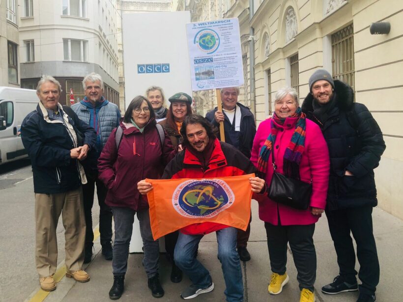 Die Delegation des 3. Weltmarsches für Frieden und Gewaltfreiheit wurde am 8. November in Wien herzlich empfangen. Das Programm umfasste die feierliche Übergabe des 3WMP-Manifests an die OSZE und eine Führung durch die UNO-City Wien. Am darauffolgenden Samstag fand die Präsentation des 3. Weltmarschs im transform!at (Verein zur Förderung linker Diskurse und Politik) statt, begleitet von einer Diskussion.