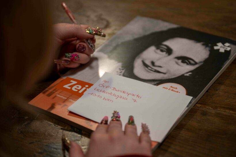“Da der ÖVP-Bundesvorstand offenbar weder bei den eigenen Wahlversprechen, noch im Geschichtsunterricht aufgepasst hat, haben wir ihm anlässlich des Holocaust-Gedenktag am 27. Jänner ein österreichisches Schulbuch für Geschichte übergeben.”