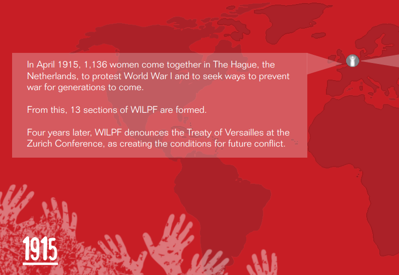 Im Jahr 2015 feierte die Internationale Frauenliga für Frieden und Freiheit (WILPF) ihr 100-jähriges Bestehen. Anlässlich dieses bedeutenden Ereignisses gab die WILPF der Bewegung, für die sie sich seit 100 Jahren einsetzt, einen eigenen Namen: „Women’s Power to Stop War” (Die Macht der Frauen, Kriege zu beenden).
