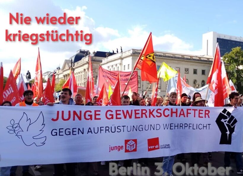 In der Presseerklärung des Vorbereitungskreises „Nie wieder kriegstüchtig! Stehen wir auf für Frieden“ zu den Demonstrationen in Berlin und Stuttgart am 3.Oktober 2025 heißt es: