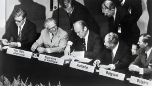 Heute, 50 Jahre nach dem KSZE- Helsinki-Abkommen wollen manche Politiker:innen gar nicht mehr miteinander reden. Außenminister wichtiger Staaten fehlen bei der diesjährigen Konferenz in Wien.