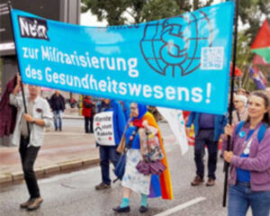 Die Ärzte-Organisation IPPNW warnt vor der Militarisierung des Gesundheitswesens in Deutschland, insbesondere im Hinblick auf mögliche Kriege. (18) Die Ressourcen des zivilen Gesundheitssystems würden für militärische Zwecke umgeleitet, was zu einer Priorisierung der Behandlung von Soldaten gegenüber Zivilisten führen könnte. Die Organisation fordert ein ziviles Gesundheitswesen und lehnt jegliche Maßnahmen ab, die eine Kriegsmedizin begünstigen: „Jede Vorbereitungsmaßnahme für Krieg, fördert indirekt die Bereitschaft, sich auf etwas einzustellen, was um jeden Preis verhindert werden muss. Daher setzt sich die IPPNW entschieden gegen eine Militarisierung des Gesundheitswesens ein. Die Aufgabe von Ärztinnen und Ärzten, Pflegekräften und allen Beschäftigten des Gesundheitswesens bleibt die Versorgung der Patient*innen – nicht die Unterordnung unter militärische Planungen. Das Gesundheitswesen darf nicht der Logik und der Befehlsgewalt der Bundeswehr unterworfen werden, sondern muss zivil bleiben.“ (19)